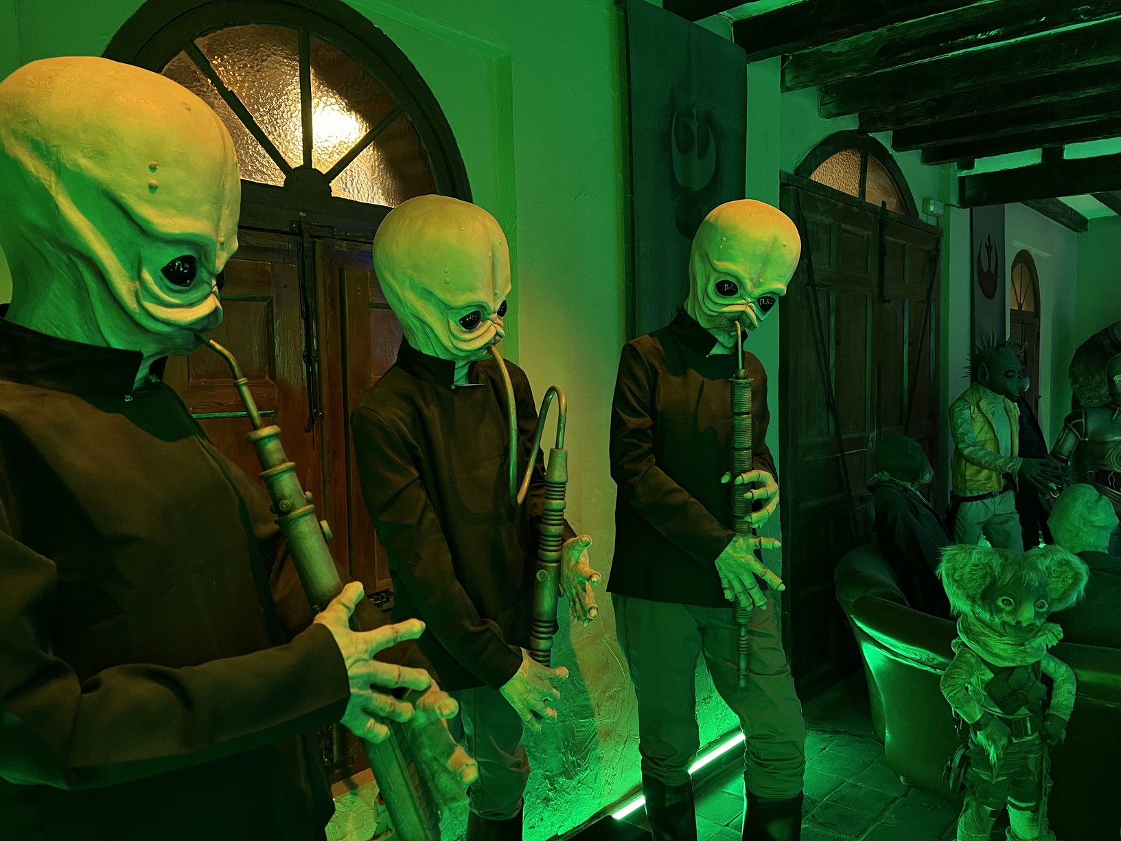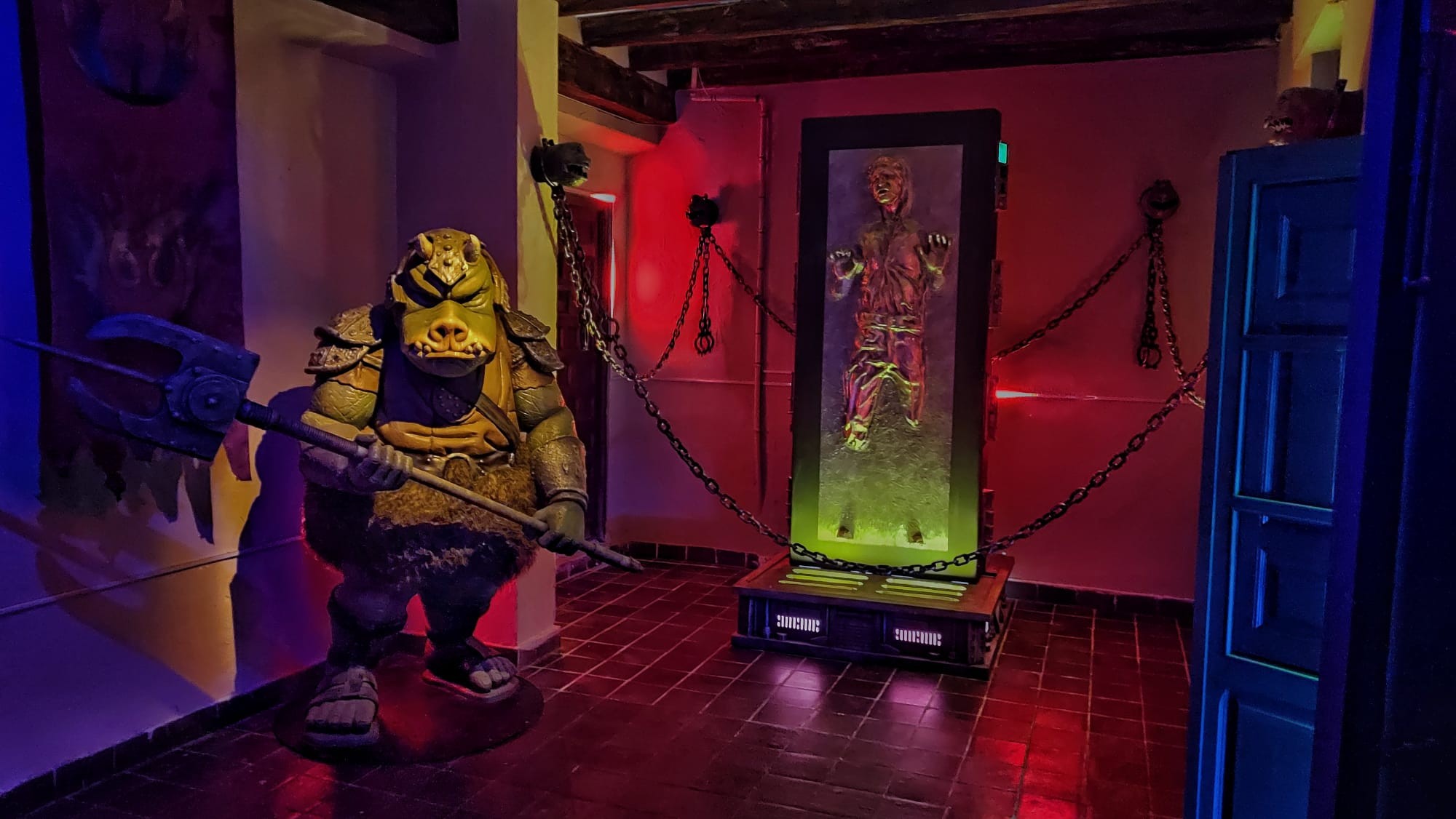 Puerto Espacial es una exposición permanente ambientada en las películas de ciencia ficción con la que te transportarás directamente a un rodaje de cine. Decorados, naves y personajes a tamaño natural. En Puerto Espacial vais a poder visitar desde los puestos de mercaderes llegados de todos los rincones de la galaxia, explorar una cueva helada, descubrir un palacio con unos habitantes muy famosos y por supuesto entrar en nuestro fantástico hangar. La aventura os espera en Puerto Espacial.