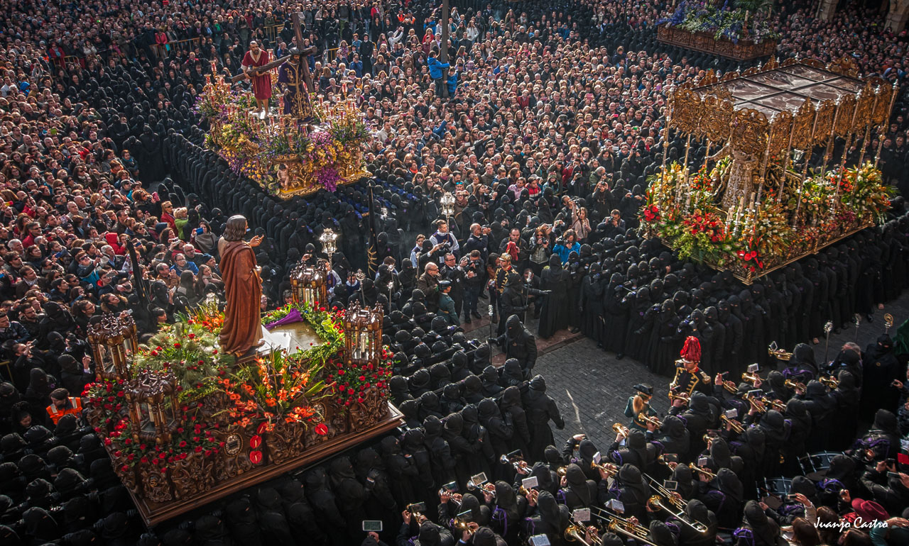 A lo largo de diez días, desde la emocionante salida en la tarde del Viernes de Dolores de la antigua imagen de la Virgen del Camino, conocida popularmente como la del Mercado, y hasta la suelta de palomas en la mañana del Domingo de Resurrección, en la plaza de la Catedral, un total de dieciséis cofradías y hermandades penitenciales -algunas con más de cuatro siglos de existencia- organizan treinta procesiones, desfilan por las calles un centenar de espectaculares grupos escultóricos portados a hombros por los hermanos braceros, organizan Vía Crucis procesionales, rondas lírico-pasionales, conciertos, pregones... todos ellos en medio de la mayor expectación popular.