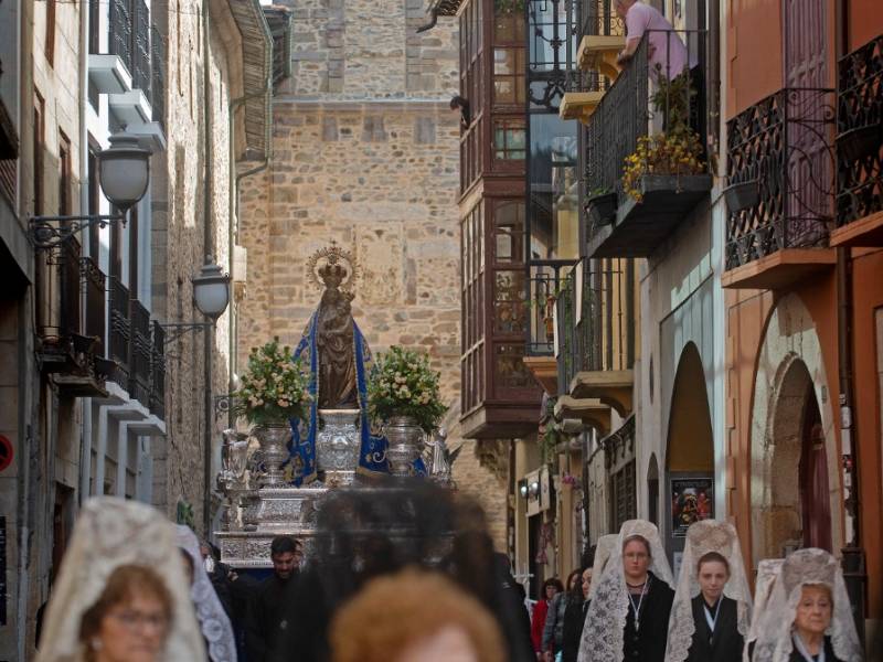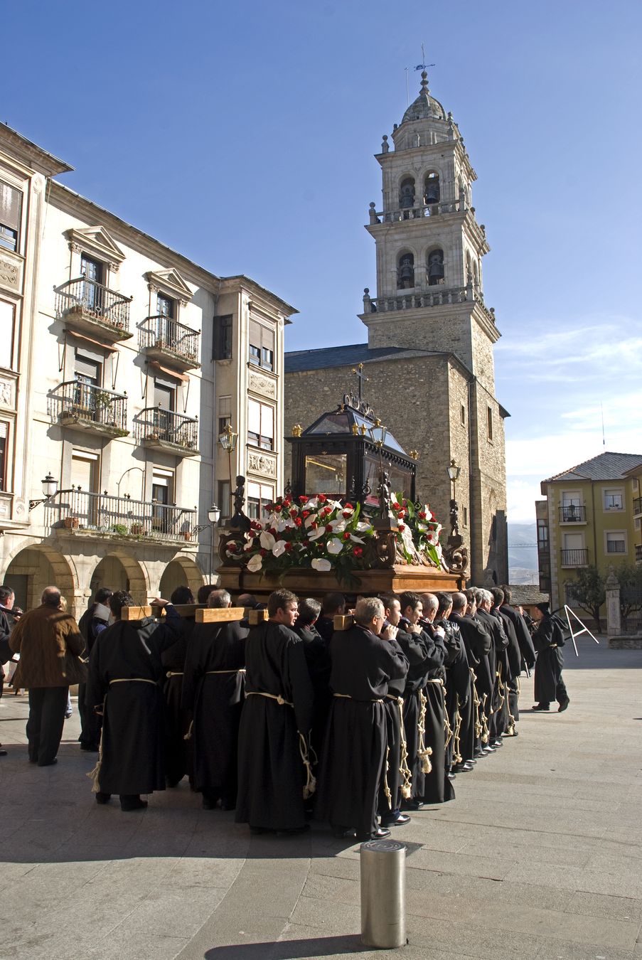 En la Semana Santa de Ponferrada son varios los motivos y la riqueza tradicional que pueden llegar a sorprender al visitante, como por ejemplo un cofrade enlutado que, acompañado de chiquillos, anuncia con una campanilla por las calles la celebración de una procesión. Ese personaje recibe el curioso nombre de ‘Lambrión chupacandiles’.