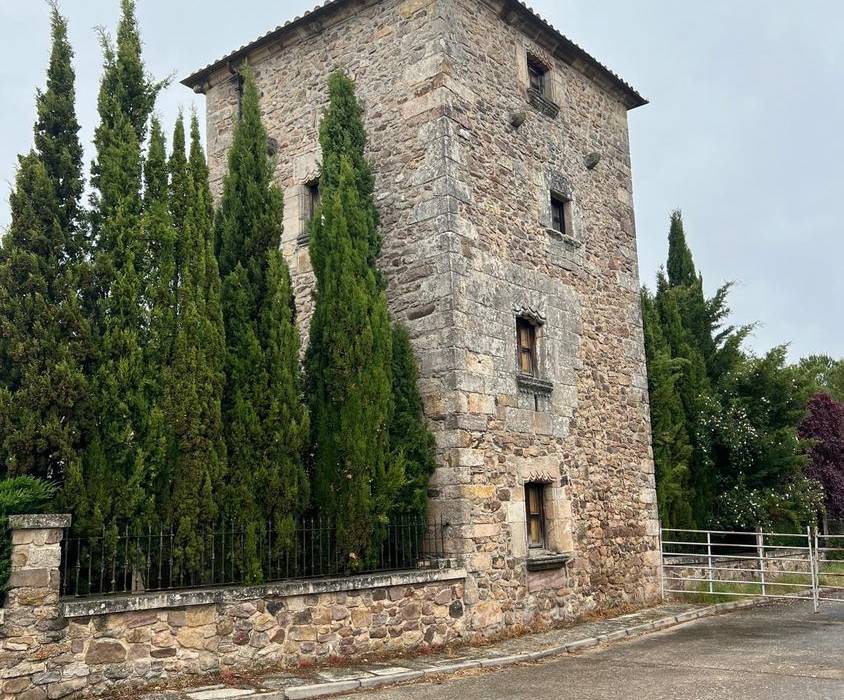 Esta torre de cuatro plantas adosada a lo que en su día fue un palacio, cuadrada y realizada en mampostería. Un lugar con escasas ventanas, donde la más llamativa mantiene parte de su decoración. Todo ello cubierto con un tejado a cuatro aguas apoyado en voladizo. En el centro de cada uno de los lienzos resaltan dos canes con fines decorativos.