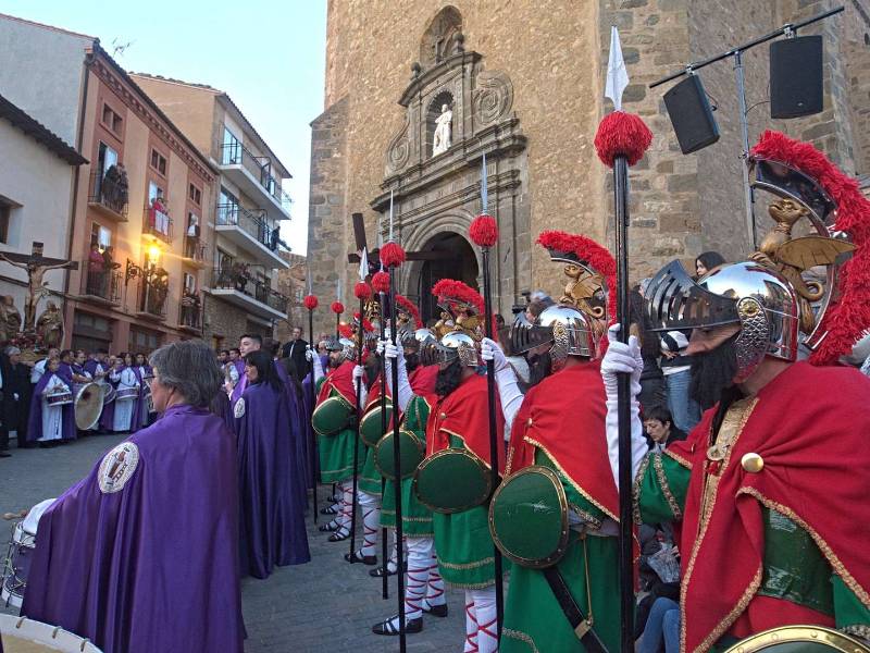 En la mañana del Viernes Santo, la Cofradía desfila por las calles de la villa siguiendo un protocolo secular. Se trasladan las imágenes a la Basílica de Ntra. Sra. de los Milagros para celebrar el Sermón de las Siete Palabras, durante el que se produce el cambio de guardia de soldados romanos que custodian el Calvario.