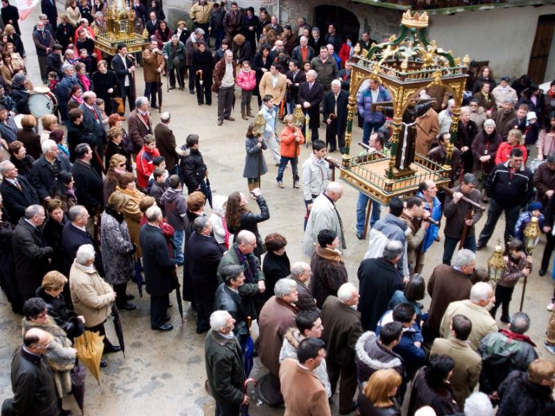 Al caer la tarde, ya desde el siglo XVII, las campanas de la parroquia y de la capilla del Santo llaman a los vecinos para que se reúnan en la plaza de San Pedro Bautista. Una procesión de jinetes y vecinos a pie arrancará en honor al Santo para lanzarle vítores.