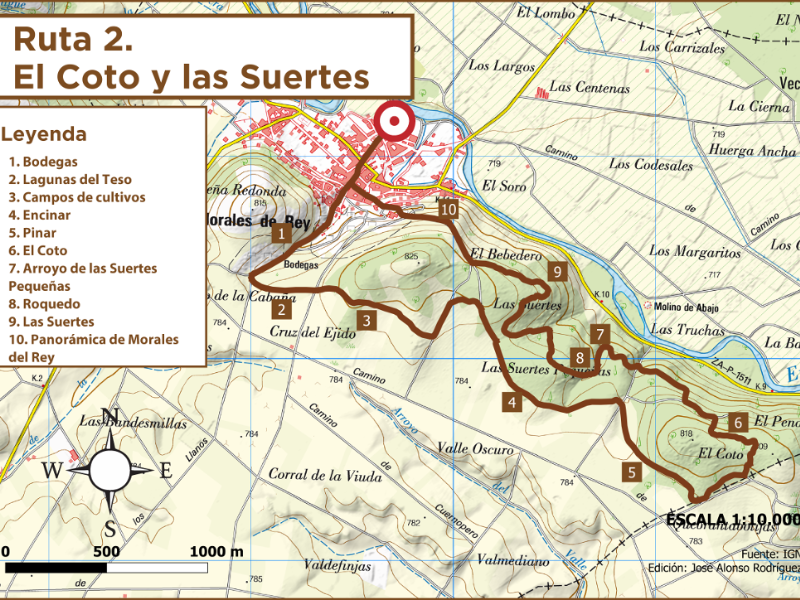 Se trata de una ruta circular con comienzo y fin en la Plaza de la Iglesia de Morales del Rey. El recorrido discurre por senderos y caminos de la Sierra de Carpurias entre Morales del Rey y Manganeses de la Polvorosa. Debido a la pendiente y piedras sueltas de los senderos, no se recomienda hacer la ruta en bicicleta.