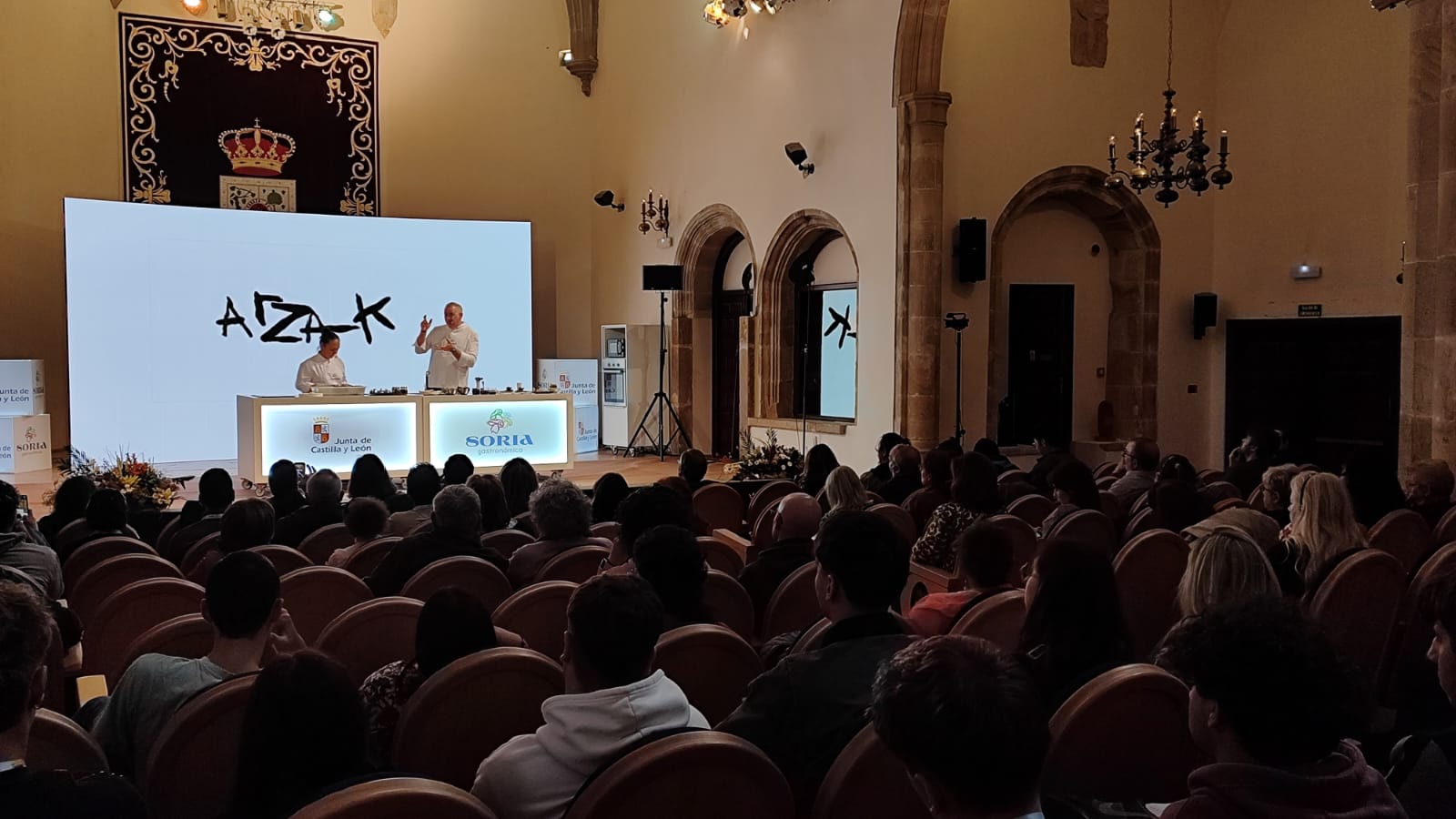 De plus, cette année, le Congrès « Soria Gastronómica » s'engage à dialoguer avec le public et la ville de Soria , avec des ateliers et des tables rondes organisés au Couvent Santa Clara, au Centre civique Bécquer et au Marché municipal. Ces événements complètent le programme officiel de conférences et de présentations de l'Auditorium Tirso de Molina. Ce programme favorise les échanges entre chefs locaux et régionaux – en l'occurrence, d' Ávila, de Léon, de Zamora et de Soria– et chefs et experts d'Amérique, d'Asie et d'Océanie, qui partagent leurs connaissances de la cuisine internationale et les dernières avancées en mycoculture forestière.