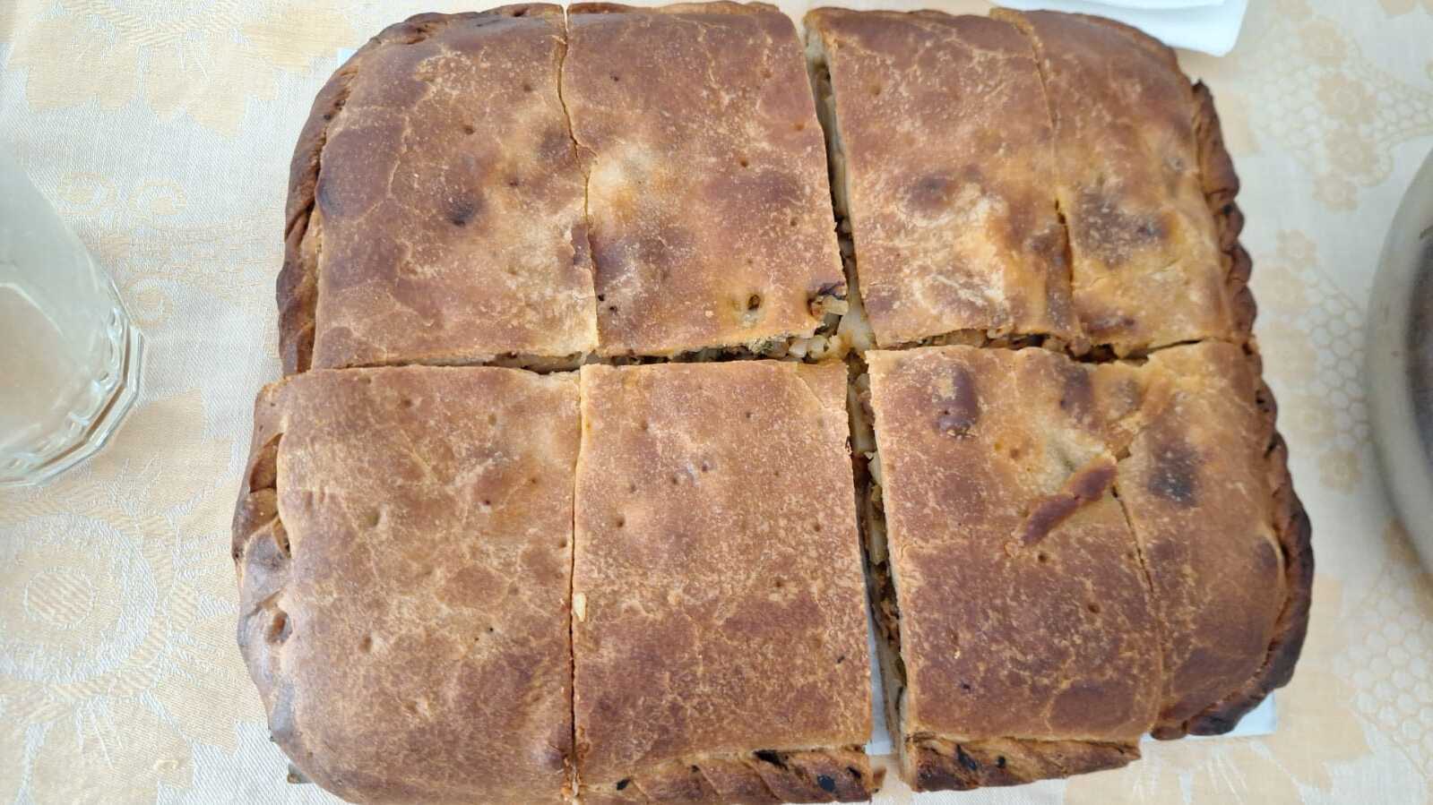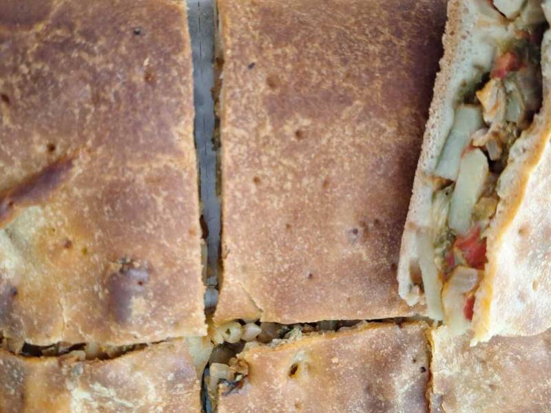 Une fois le sauté terminé, retirez une partie de l'excès de graisse et réservez le reste des ingrédients en profitant de l'occasion pour désosser la viande. Ensuite, faites revenir un peu les tranches de pommes de terre dans de l'huile neuve. Ensuite, mettez les feuilles de blettes hachées et les pommes de terre dans les restes de graisse provenant du sauté de la viande. Lorsque les blettes semblent cuites, retirez tout. Avec la moitié de la pâte, tapissez un moule à empanada spécial graissé ou utilisez du papier sulfurisé. Disposez les blettes et les pommes de terre sautées sur la pâte étirée et déposez le reste de la garniture dessus. Recouvrez-le avec la feuille de pâte restante, rassemblez-le et tressez un peu les bords avec vos doigts, comme s'il s'agissait d'un cordon. Il est placé dans le four que nous avons préalablement chauffé à 200 ºC. On garde un œil sur la pâte et quand elle commence à vouloir dorer un peu (environ 15 minutes), on baissera la température à 180 ºC et on en profitera pour peindre la surface avec un pinceau à huile. Laissez-le au four pendant environ 30 minutes supplémentaires. Nous éteignons le four et gardons l'emanda à l'intérieur pendant encore 10 minutes. Il est retiré du four (temps de cuisson total 55-60 minutes) et laissé perdre de la température afin de pouvoir être consommé chaud.