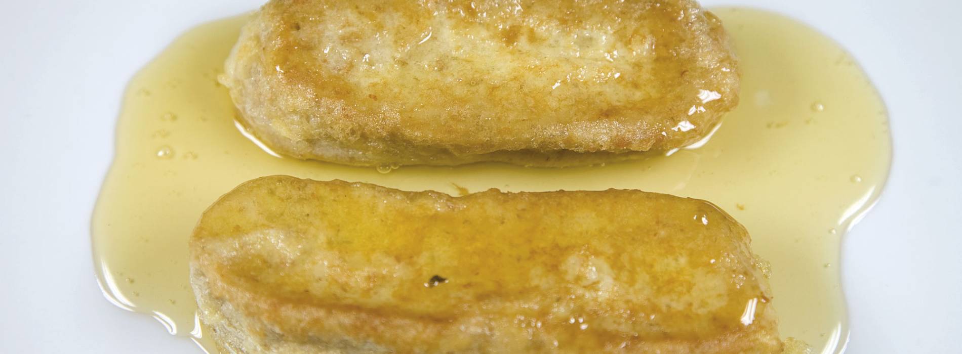 Faites bouillir le lait avec le sucre, la vanille et le zeste d'orange. Éteignez le feu et laissez reposer pendant 30 minutes. Une fois bouilli, retirez la vanille et le zeste d'orange et faites tremper les portions de pain quelques minutes de chaque côté. Faites chauffer l'huile et enrobez les portions de pain dans l'œuf. Égouttez et faites-les frire des deux côtés (ils doivent être bien dorés). Placez les pains perdus sur un plateau et recouvrez avec du miel.