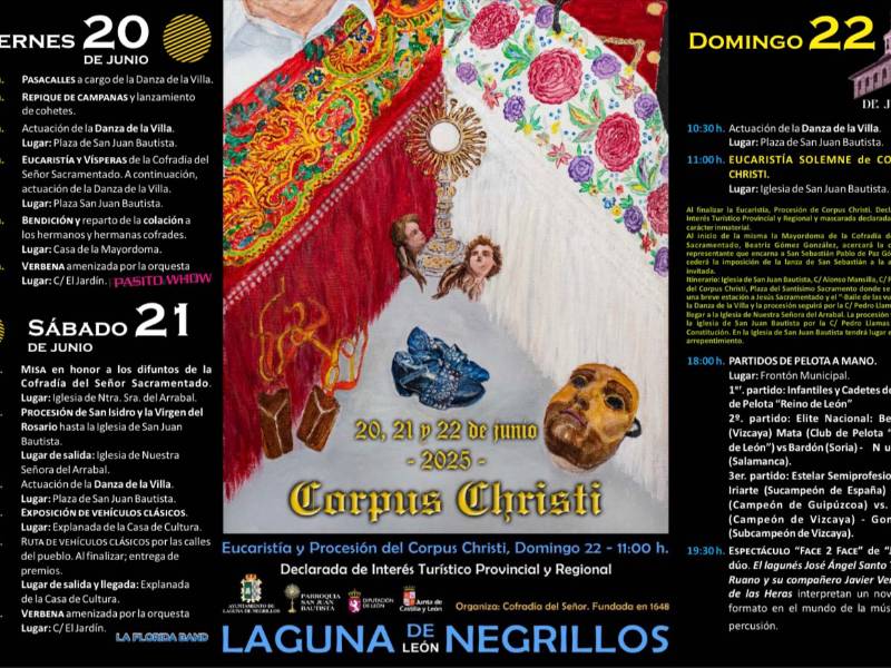 Cette célébration dont l'origine est le culte public de l'eucharistie, dépasse les actes liturgiques proprement dits et prend des nuances profanes. Les représentations et les danses viennent s'ajouter à la fête religieuse. C'est ainsi qu'un cortège d'hommes vêtus de grands jupons, parcourt les rues de Laguna de Negrillos en suivant la marche des danses traditonnelles.