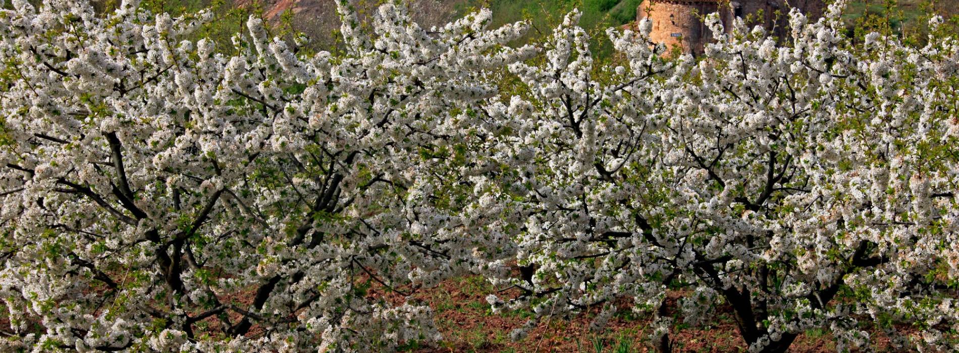 Le printemps dans la vallée de Caderechas à Burgos est marqué par la couleur blanche de plus de cinquante mille cerisiers qui, chaque mois d'avril, déploient toute leur splendeur. Il est frappant de constater que ces terres du nord cultivent ces cultures plus typiques des cultures plus tempérées. Ceci est possible grâce au mur naturel qui protège la vallée des vents froids, créant un microclimat qui favorise cette merveilleuse singularité.