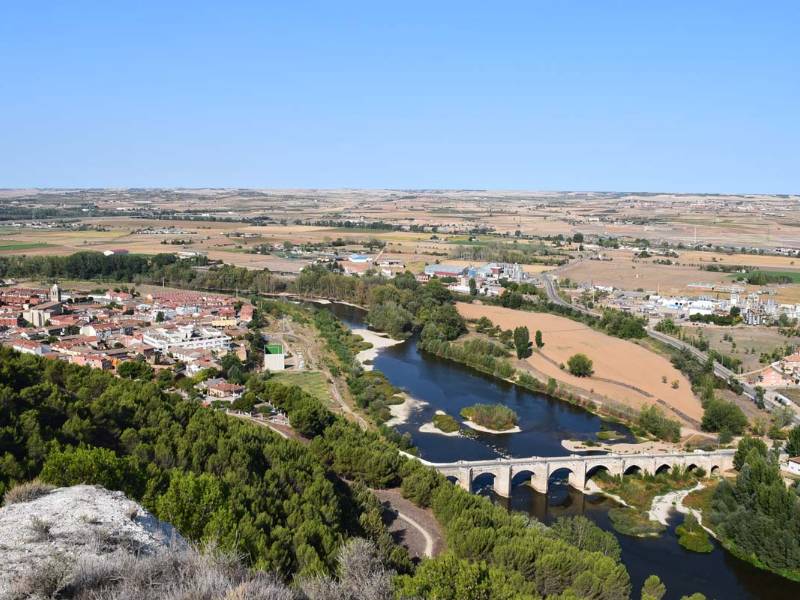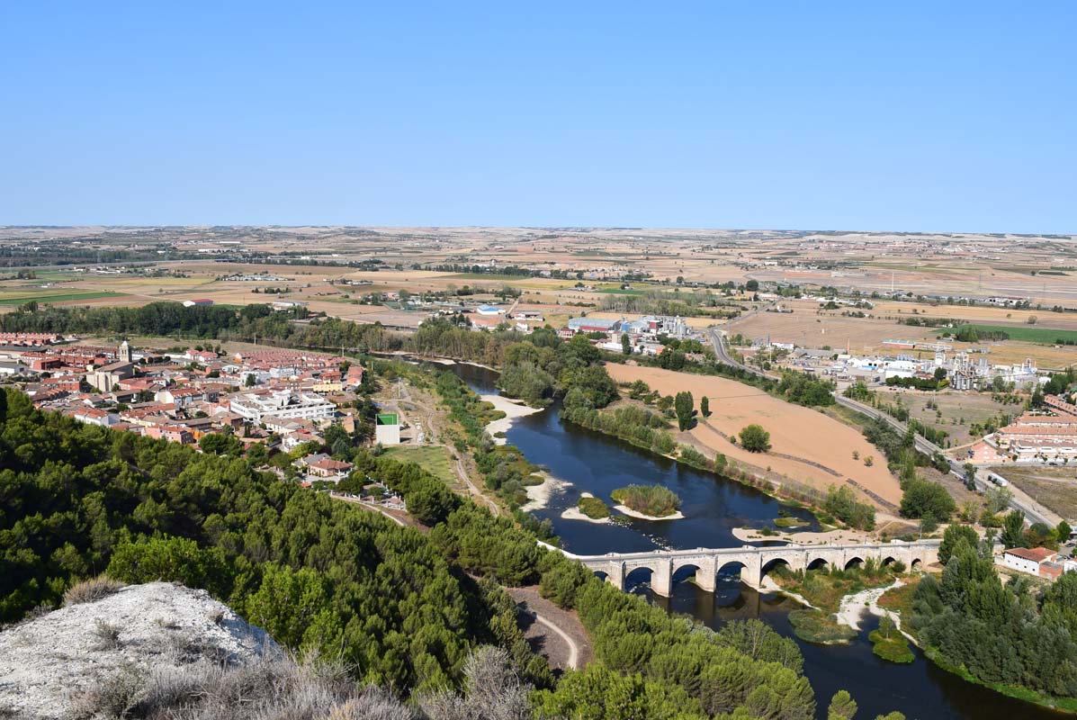Il traverse d'innombrables vignobles, des vues sur la rivière Pisuerga avec ses falaises, ses cabanes, le Monte de Dueñas, ses champs de céréales et ses landes.