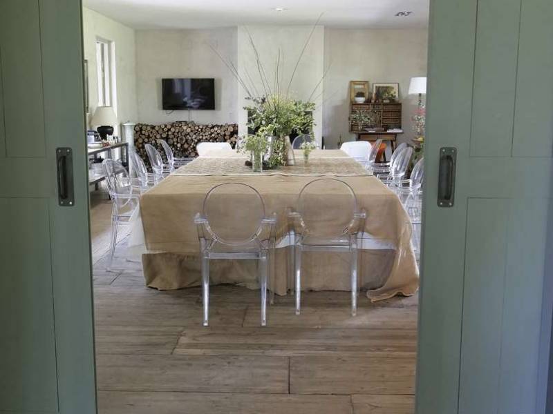 La maison s'articule autour d'un petit patio couvert, rempli de plantes et entouré d'une galerie lumineuse. Il a un salon avec bibliothèque pour être, profiter de la cheminée, écouter de la musique, lire, une salle pour des activités et des célébrations, avec une capacité de 20 personnes et une troisième salle de jeux. L'espace extérieur est surmonté d'un magnifique porche en bois offrant une vue imprenable, intégré à la campagne. La construction a été réalisée en essayant de maximiser la durabilité et la récupération des matériaux des vieux bâtiments.