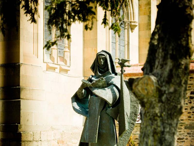 Suivant les traces de Thérèse d’Ávila nous commençons ce parcours à travers Alba de Tormes, localité qui doit son nom en grande partie du fait d’être le berceau de la famille de la Casa de Alba, bien que sa situation proéminente sur les cartes de l’histoire est due au fait d’avoir été le témoin et la demeure finale de Thérèse d’Ávila dans sa cellule du Monastère de la Anunciación.
