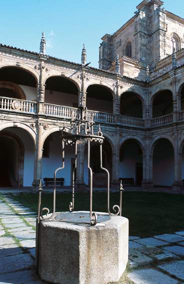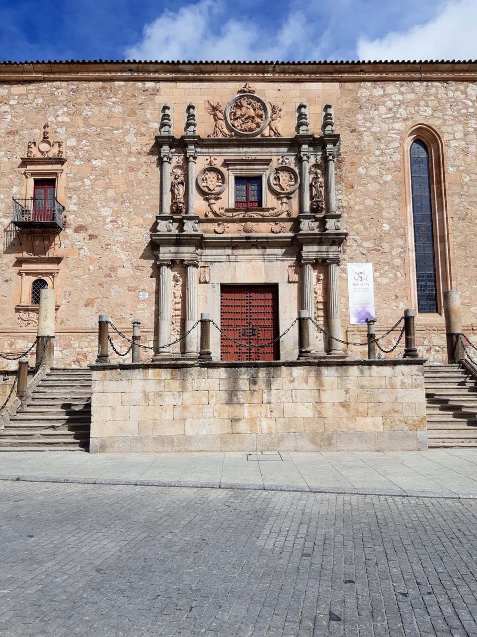 Le portail se compose de deux corps: le premier présente une porte avec des demi-colonnes réunies entre elles et un ornement plateresque. Le deuxième corps qui présente les mêmes demi-colonnes se dresse sur une frise ornée de coquilles. Sur les côtés de la fenêtre on remarque les armoiries des Fonseca qui dominent tout un médaillon avec l'apôtre Saint-Jacques à cheval.