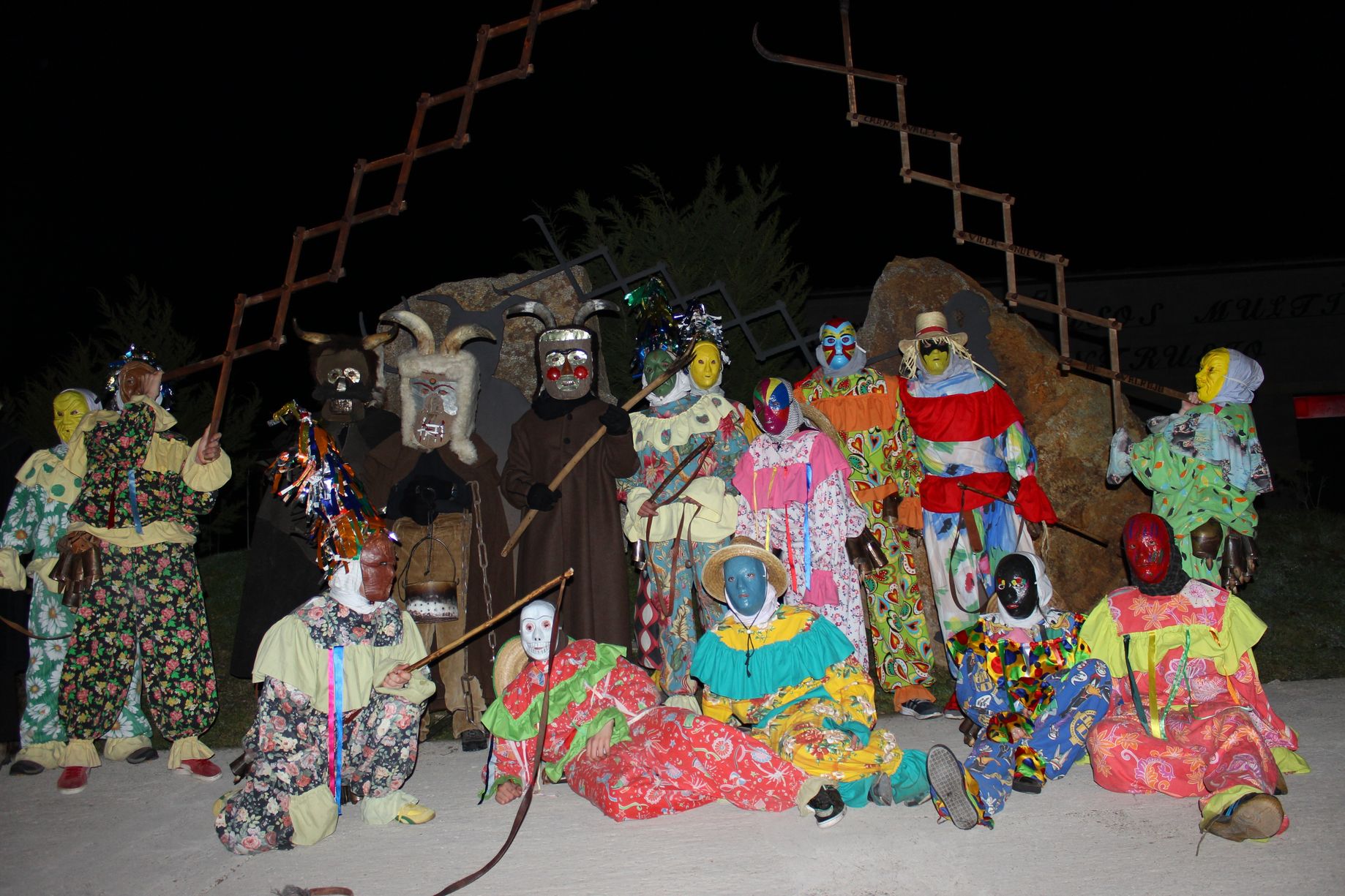 Les costumes traditionnels se composent de costumes aux couleurs vives, aux imprimés floraux ou arlequins, avec des chemisiers et des pantalons amples. Les masques, fabriqués à la main par les habitants, sont généralement en papier pressé, en cire ou en cuir. Pour dissimuler leur identité, ils se couvrent l'arrière de la tête avec des foulards ou des chiffons. L'élément le plus caractéristique est la cloche qu'ils portent attachée à la taille, dont le nombre varie, et qui résonne dans tout le village pendant les célébrations.