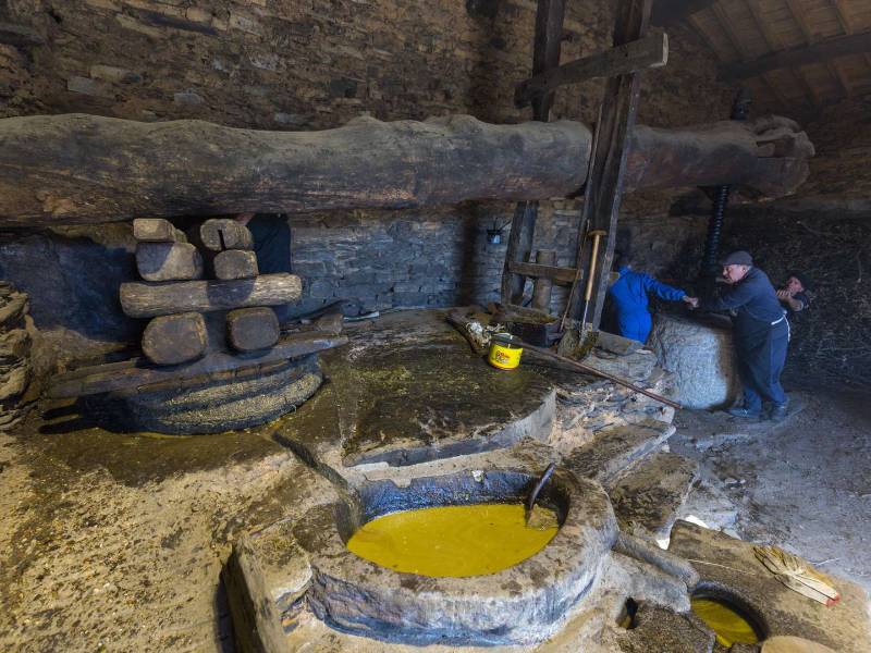 "La Lagar" de Latedo, est l'un des rares moulins restants à Aliste, où depuis de nombreuses années l'huile est produite de manière artisanale et manuelle, alimentée par la force animale et humaine, sans la présence de machines électriques ou thermiques.