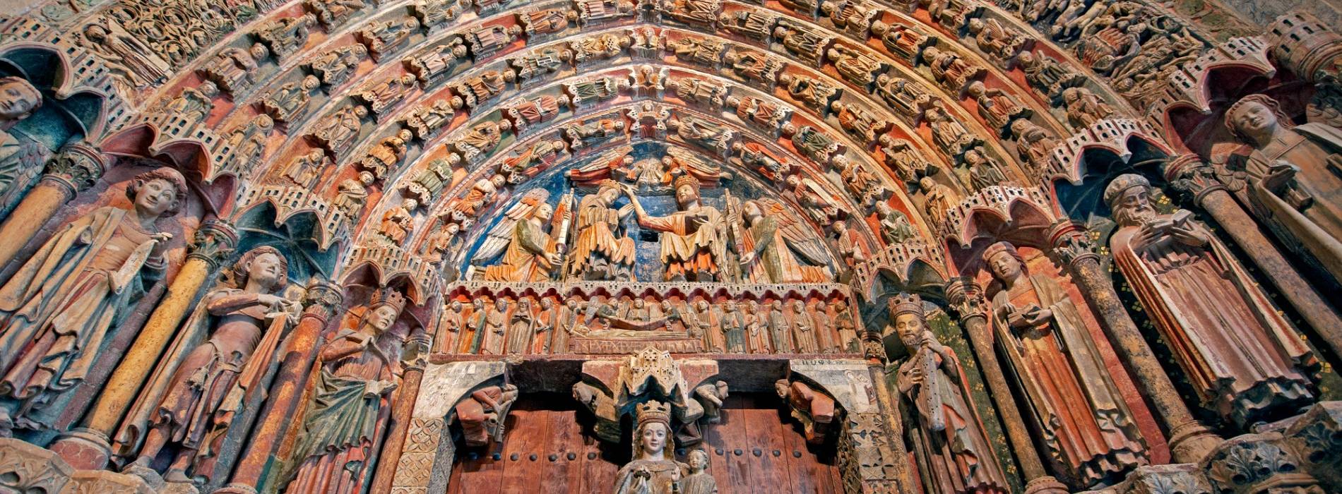 Les couvertures sont importantes. Le portail nord de la collégiale de Toro nous montre le Christ en majesté avec la Vierge, Saint Jean et les 24 anciens de l'Apocalypse, dans une représentation du Jugement dernier. La couverture sud est plus simple. Mais parmi tous, la COUVERTURE DE LA MAJESTÉ se démarque, l'une des couvertures les plus célèbres de l'architecture gothique espagnole. il a été sculpté et polychrome dans le dernier quart du XIIIe siècle. Très intéressant est la riche exposition d'instruments de musique joués par les Anciens de l'Apocalypse autour d'une manifestation de la divinité du Christ, de la Vierge et de Jean.