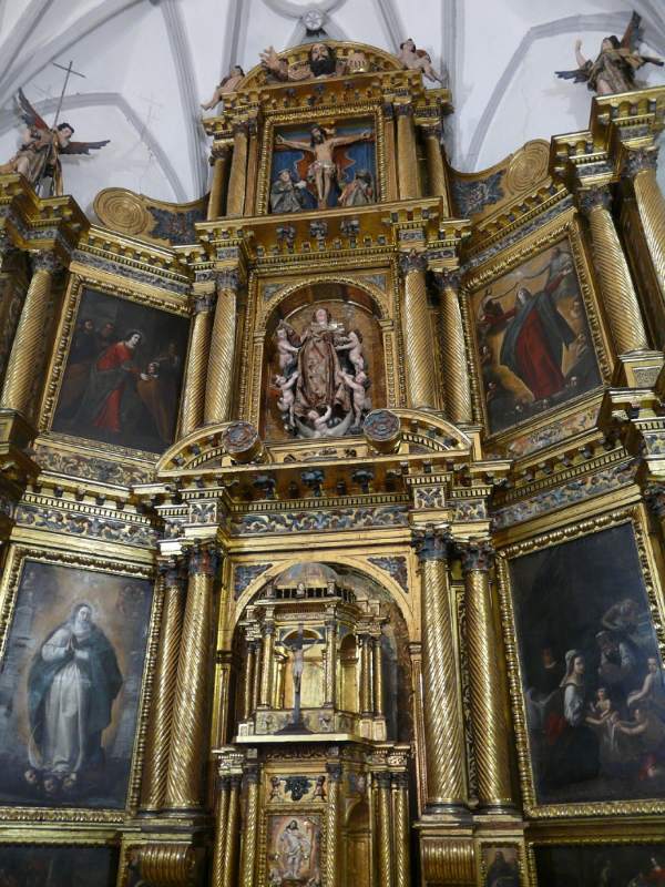 Le maître-autel est fait de deux corps, et le sol est pavé de dalles, ce qu’indique qu’il a été un cimetière. La chapelle principale est occupée par un retable dédié à la Vierge de la Asunción qui occupe la niche centrale, et sur l'autel le mausolée des Condestables, où la famille Luna est enterrée. Il est remarquable, un tableau sculptée en bois représentant M. Matro, fils de cette village et évêque de Cartagena.