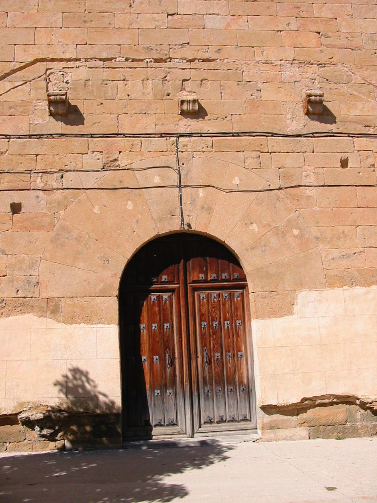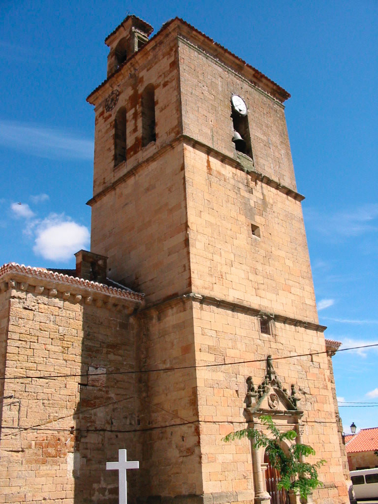 L'église, élevée en maçonnerie de grès bien sculptée et de nombreuses marques de maçonnerie, dessine un rectangle où entrent ses trois nefs et le transept. Les nefs, du XVIe siècle, sont recouvertes d'un cadre en bois, octogonal au début et dynamisé et articulé plus tard, semblable à celui de l'église de Villoria. Du même siècle se trouve la gracieuse tour, située au pied, dans laquelle s'ouvre une porte plateresque.