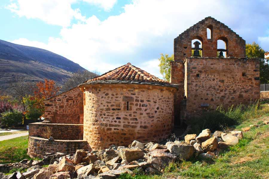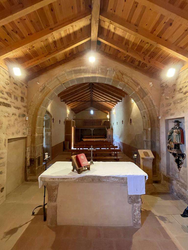 Il est de petite taille et se caractérise par sa simplicité constructive et l'utilisation de matériaux pauvres, typiques de l'architecture rurale. Son origine remonte à la fin du XIIe siècle ou au début du XIIIe siècle. Le temple conserve l'abside romane, composée d'une abside semi-circulaire et d'une section droite. La partie romane, comme le reste de la construction, est construite en maçonnerie avec renfort de pierres de taille en grès. Une simple corniche termine les murs, sur les pierres de taille desquelles sont perceptibles les marques du travail à la hache et celles d'un tailleur de pierre. Au XVIIIe siècle, une vaste réforme fut réalisée, qui comprenait la construction d'une sacristie au sud, d'un beffroi accolé au nord du presbytère et du portique.