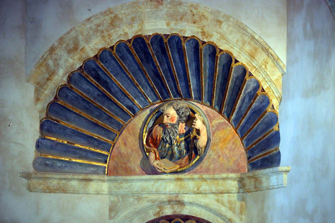 Bâtiment du XVIe siècle, avec une seule nef divisée en deux sections par des arches à diaphragme qui soutiennent une simple couverture intérieure en bois. La chapelle principale, précédée d'un arc de triomphe pointu, est recouverte d'une voûte nervurée étoilée.