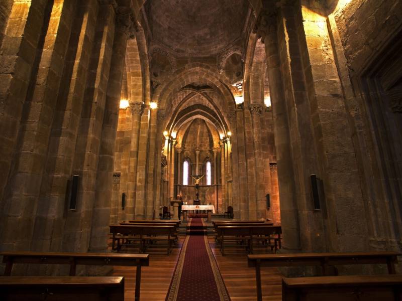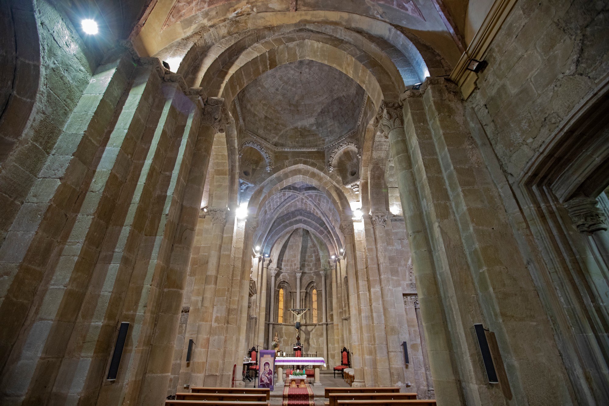 Monumento nacional. Iglesia del s. XII de planta cruciforme, en la que se mezclan influencias orientales con recuerdos clásicos y tanteos ojivales.