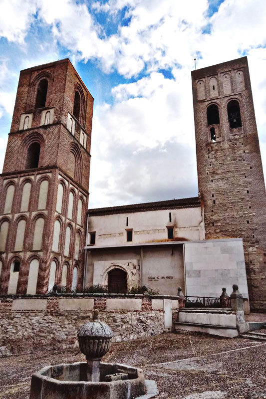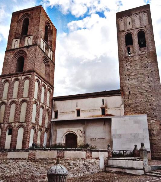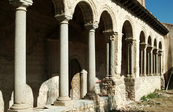 Iglesia de estilo románico y mudéjar, con grandes torres, conocidas como torres gemelas. Una de ellas, llamada de 'los ajedreces', por tener en la decoración de su parte alta varios tableros de este juego, de ladrillos. La iglesia posee un atrio al estilo segoviano con capiteles labrados y en sus muros quedan restos de pinturas de transición del románico al gótico.