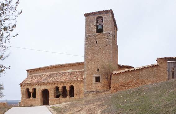 Construite au milieu du XIIe siècle, elle n'a qu'une seule nef, couverte par un plafond à caissons de valeur. À l'extérieur il faut souligner le portail, très rampant, et la galerie avec porche, avec des chapitaux représentant des oiseaux, des troubadours et une décoration végétale en tuf.