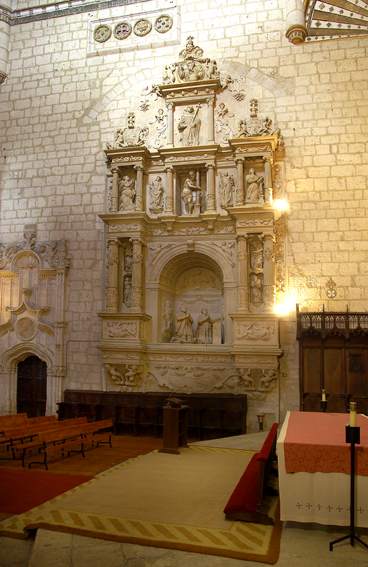Intérieur: trois grandes nefs séparées par des piliers composés qui soutiennent la voûte centrale en croisée d'ogives. L'abside correspond au mausolée des marquis de Poza, dont les niches funéraires sont situées dans les murs latéraux, décorés de statues en prière. On remarque le retable de la Piedad de la Capilla del deán Zapata et ses hauts-reliefs gothiques et flamands.