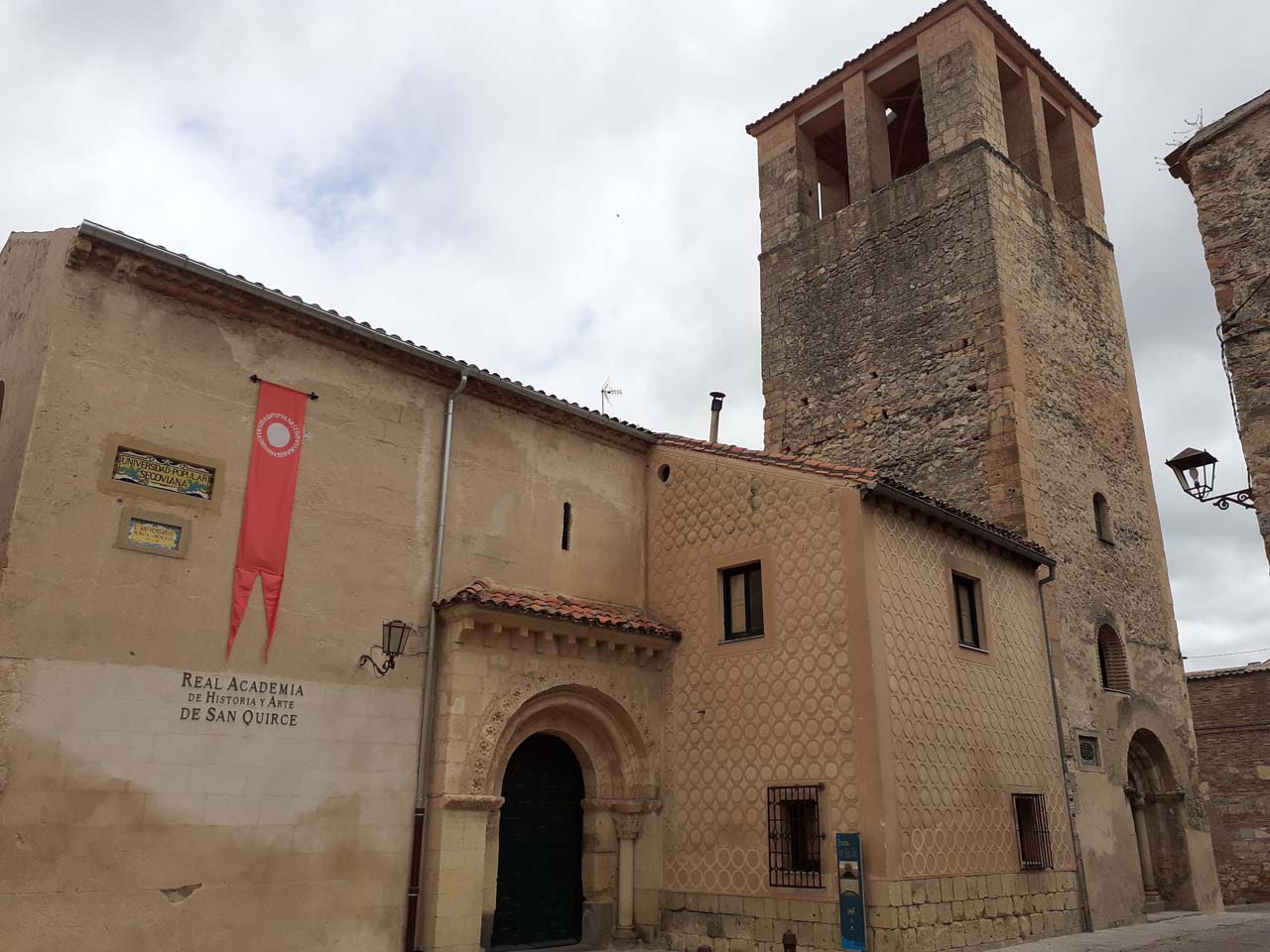 Église romane (XIIº siècle) avec une seule nef, ancienne université populaire dans les années 30 (XXº siècle) et siège actuel de l'Académie d'Histoire et d'Art de San Quirce.