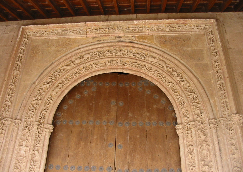 De l'origine romane de cette église, il n'y a que le mur nord, du XIIe siècle, dans lequel s'ouvre une porte à double archivolte, l'une d'elles ornée de rosaces inscrites dans des cercles de perles, semblable à celle de l'église d'Almenara.