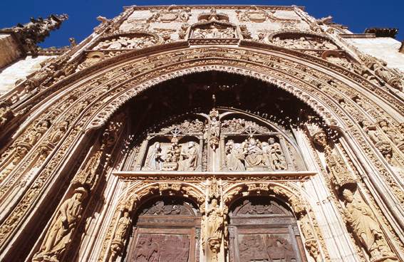 On remarque la façade sud conçue comme un grand retable à l'air libre et attribuée à Simón de Colonia, avec des scènes de la Naissance, de la Passion et de la Résurrection du Christ, de même que les portes sculptées, la crénelure de pinacles pointus et la chaire que façonnèrent Miguel de Espinosa et Juan de Cambray.