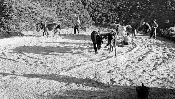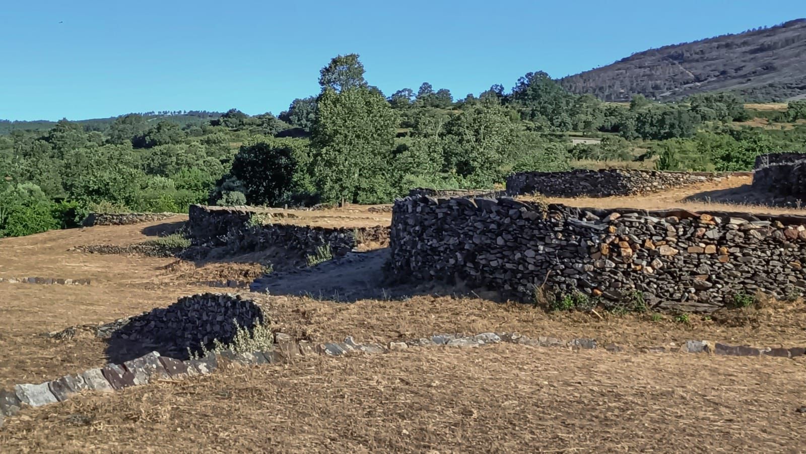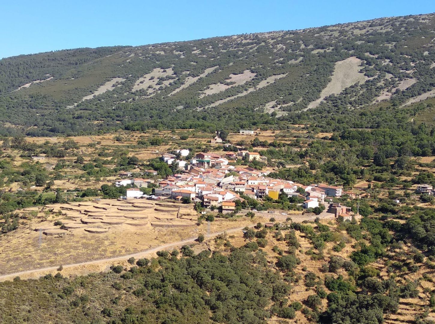 Il s'agit d'une trentaine d'aires de battage circulaires pavées de dalles de pierre, utilisées pour le battage des céréales et entourées de murets en pierres sèches pour contenir la récolte. Elles sont disposées en terrasses, épousant la topographie du terrain et formant un paysage étagé vers le fleuve Agadón, lui conférant un aspect quelque peu fortifié .