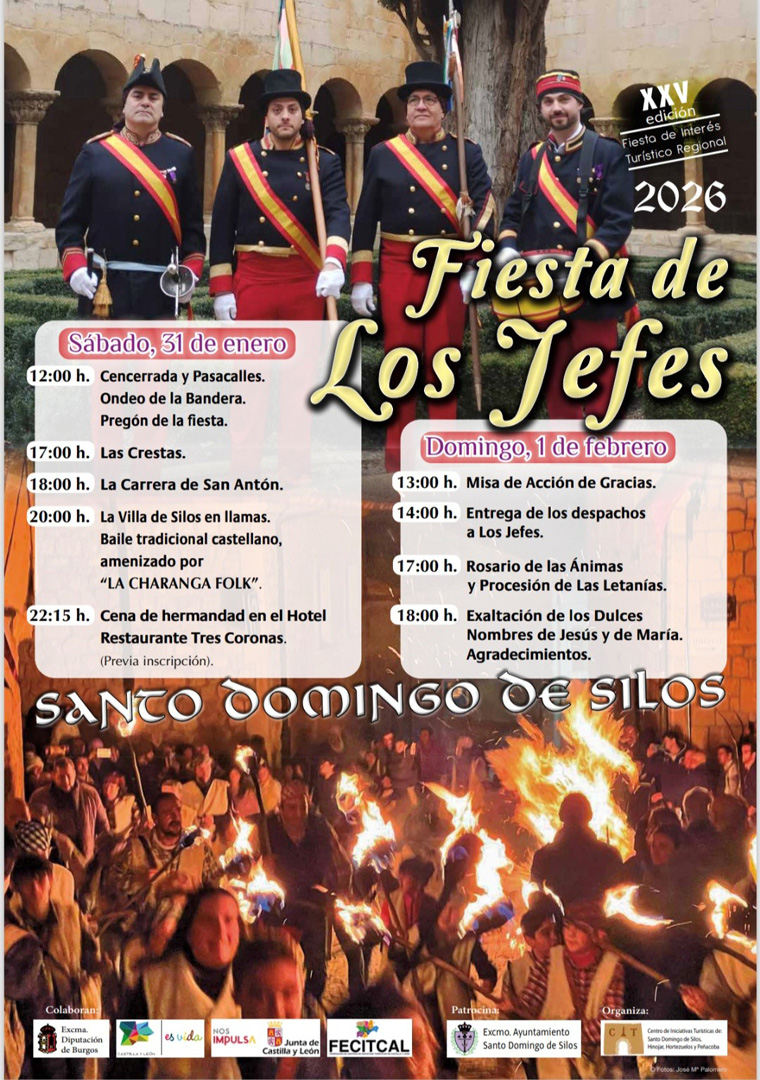 Adaptation theatrale de l'exploit des gens de Silos contre l'attaque des arabes. Clarines, bande de musique populaire 'las crestas', courses des cavaliers de San Antón, courses de garçons dans le village, portant des torches, messe castillane et d'action de grâce.