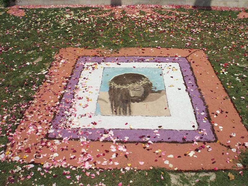 Le printemps inonde la ville de Carrión de los Condes de couleurs. Lors de la fête de la Fête-Dieu, les habitants de Carrión décorent les rues d'un grand tapis de fleurs naturelles de plus d'un kilomètre et demi de long, le long duquel circulera plus tard la procession conduite par le Chariot Triomphant. Toute la ville est impliquée dans cette manifestation artistique et culturelle, enfants, jeunes et adultes qui, de manière désintéressée, réalisent ces belles tapisseries florales.