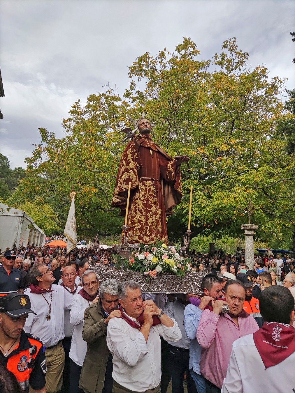 On vend aux encheres le privilege de porter le brancard servant a transporter le saint patron. Pelerinage vers le sanctuaire qui est situe a 3 km et les voisins s'y rend a pied ou sur des chevaux decores.