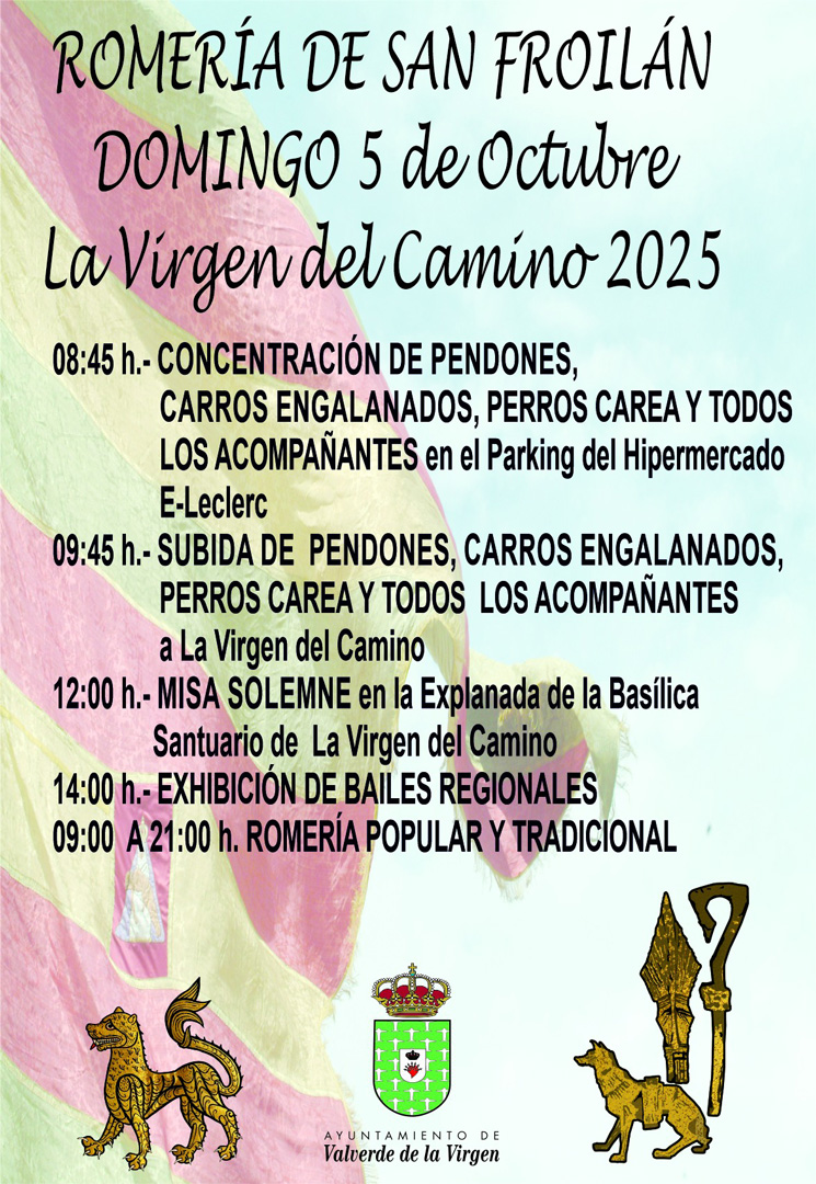 Des milliers de personnes se rendent au Sanctuaire de la Virgen del Camino pour fêter le pèlerinage, en honneur des patrons de la Région de Léon, San Froilán et la Virgen del Camino. La journée s’écoule entre des queues interminables pour baiser le voile de la Vierge, toucher le nez du Saint et se promener dans les rues remplies d’étalages.