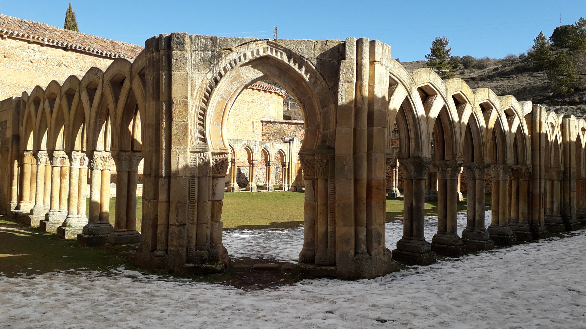 Le Chemin castillan-aragonais serpente à travers des paysages abrités par des montagnes légendaires : El Moncayo, Cebollera, les Picos de Urbión et La Demanda. Il traverse de vastes champs de céréales, des forêts de pins et est parsemé d’architecture romane, que l’on retrouve dans de petits villages et bourgs, ainsi que dans la ville même de Soria , accessible par le pont de pierre enjambant le Douro. L’itinéraire s’achève à Santo Domingo de Silos, invitant les pèlerins à visiter son monastère de renommée mondiale, un exemple admirable d’architecture, de sculpture et de chants.