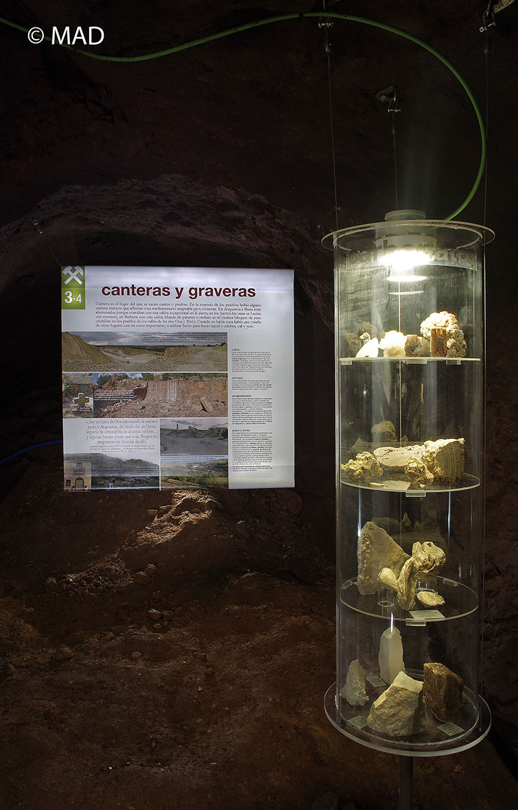 À l’intérieur de la mine, une petite exposition permanente a été créée sous le nom de « LES ENTRAILLES DE LA TERRE ». L’exposition résume de manière très simple et graphique l’histoire de l’industrie minière en Espagne, en détaillant cette activité à la province de Burgos et à la région d’Atapuerca, depuis le Néolithique jusqu’à l’actualité, mais sans oublier le cadre global dans lequel nous vivons à présent.