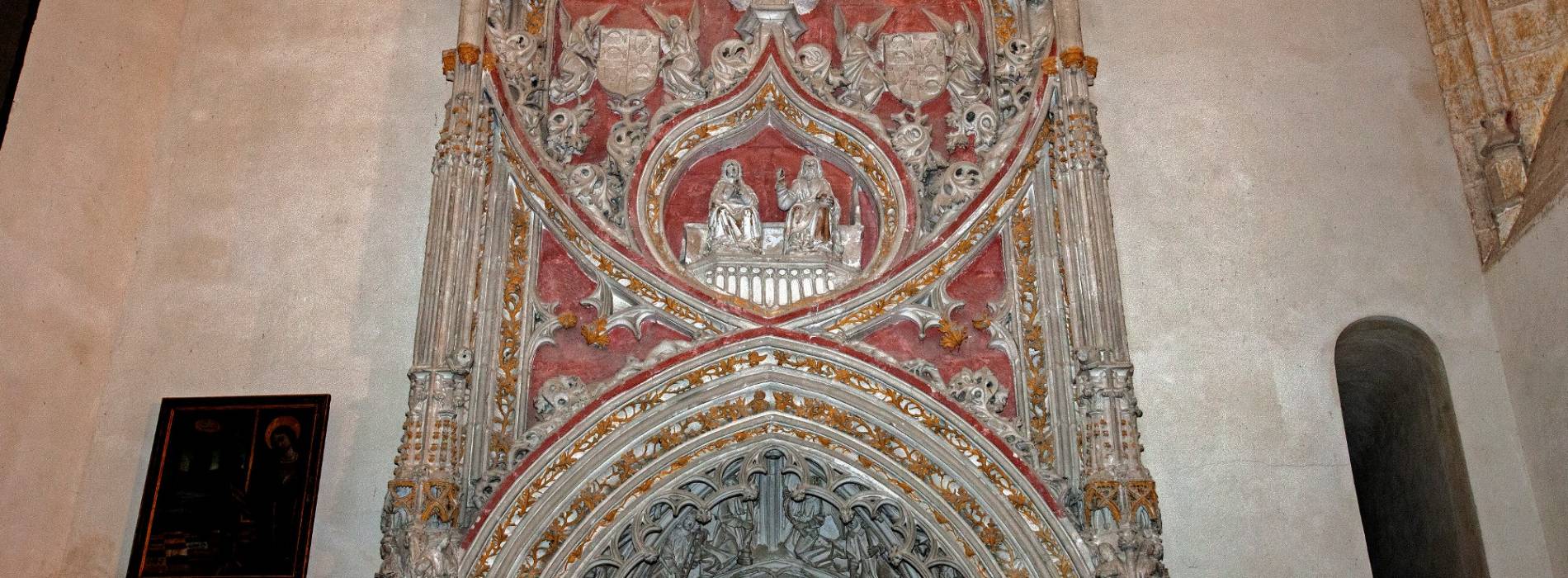 修道院的大门由一系列的拱廊组成,透过拱廊可以看到城堡,圣器室是哥特式的,而食堂的格子天花板和埃尔帕拉尔唱诗班的唱诗台则格外引人注目。