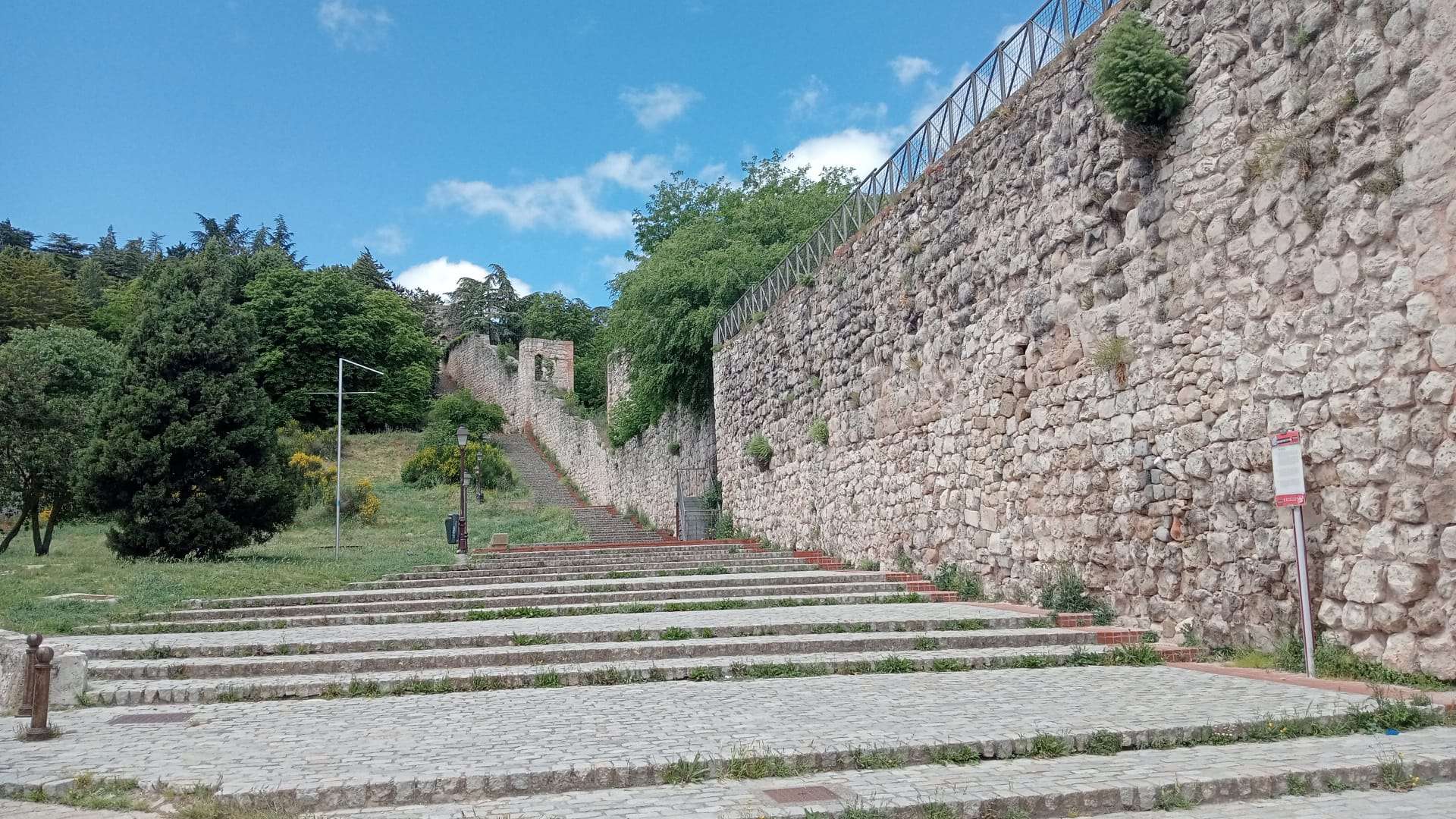 Des ruines dispersées de l'ancien château et de la muraille. Deux tours ont été reconstruites.
