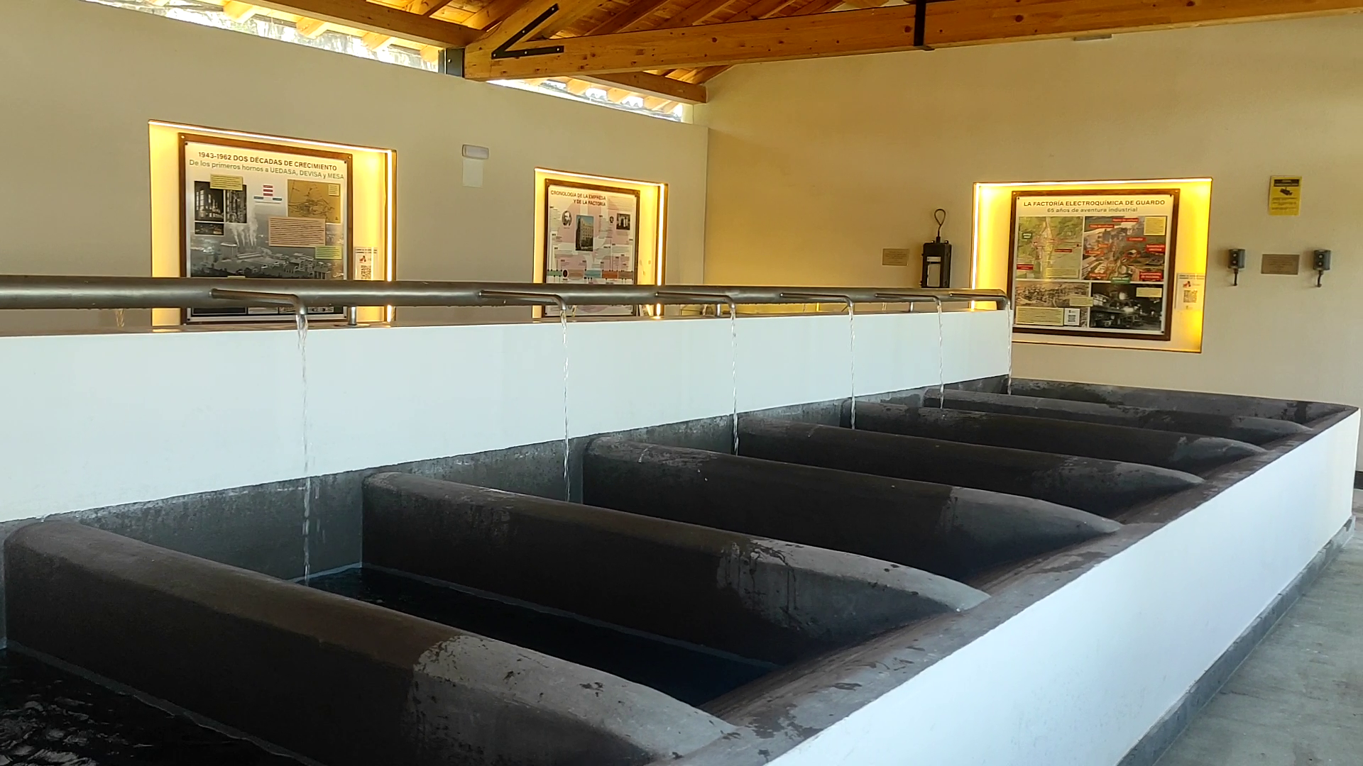 Le Centre est en réalité l'ancienne blanchisserie que l'entreprise Unión Española de Explosivos, SA a construite dans les années 60 pour ses travailleurs. L'eau de la blanchisserie était chauffée grâce au système de refroidissement propre à l'usine. En 1943, cette grande usine de carbure de calcium est entrée en service, devenant plus tard un complexe industriel complet avec de nombreuses usines chimiques. Sur les panneaux de la blanchisserie Explosivos restaurée, vous trouverez des informations qui vous permettront de découvrir l'histoire de l'entreprise, de l'usine et de ce qui y était produit.