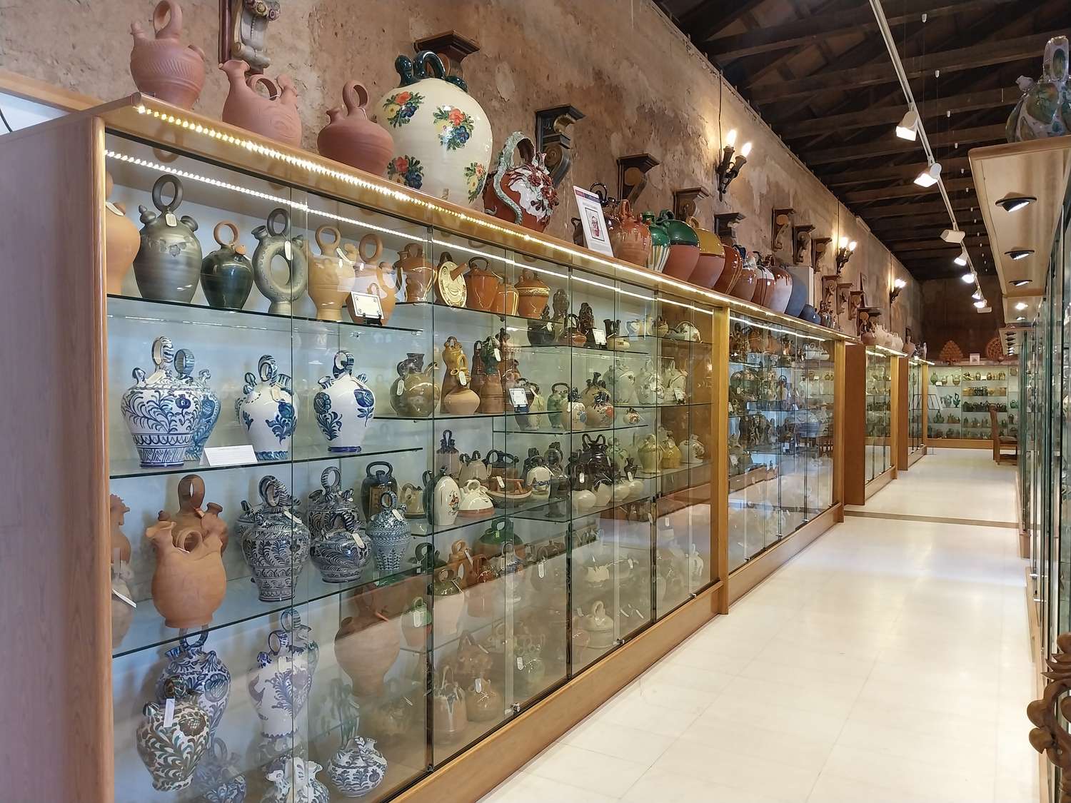 On peut admirer des "botijos" élaborés du 18ème siècle à nos jours et des curiosités telles que la nuptiale, le piège, l'étang, le cerceau, l'anthropomorphe ... des formes inimaginables dans les pièces traditionnelles et modernes de toutes les provinces d'Espagne.
