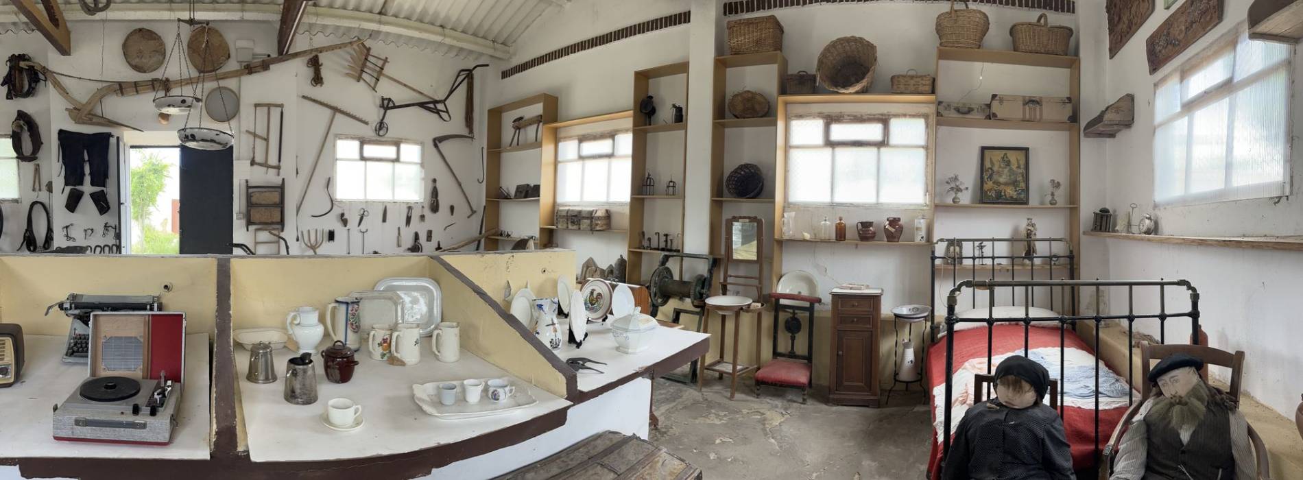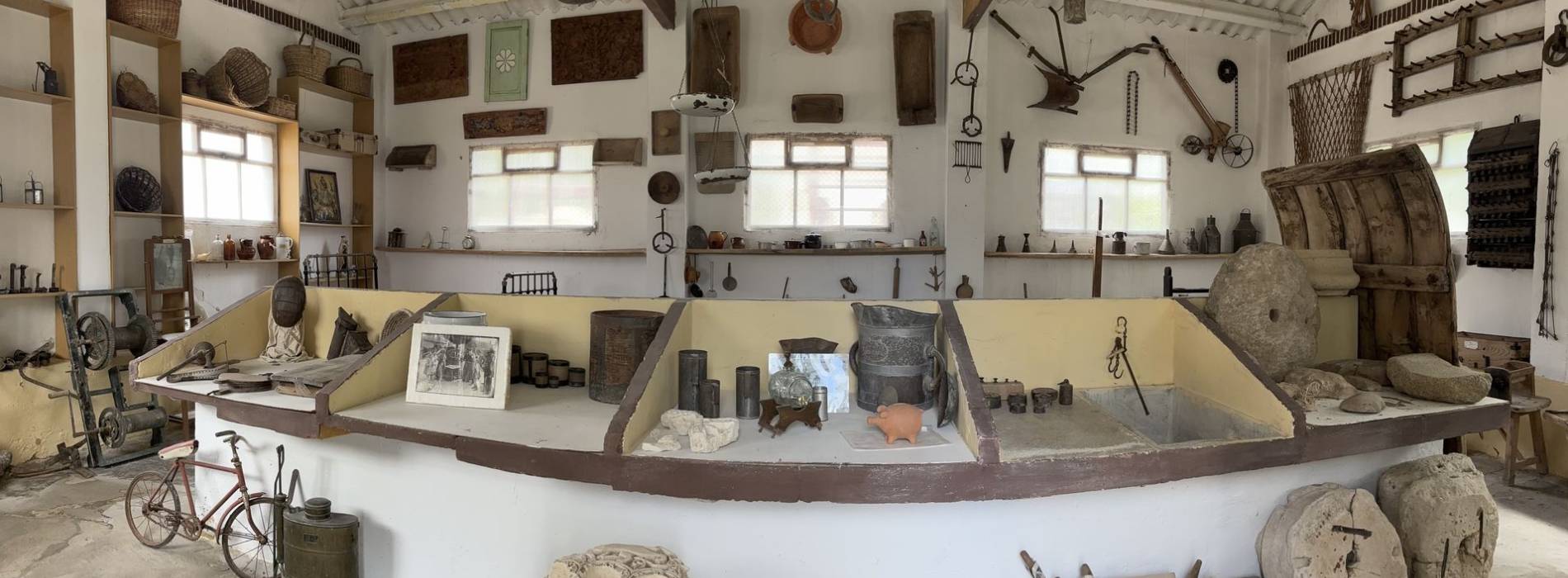 Charrue romaine, herse, demi-fanègues, outils pour le bétail, ustensiles et outils pour l'élaboration du fromage et du vin; appareils de mesure, pierres de moulin, effets et outils d'une maison de labour et matériel et mobilier d'époque.