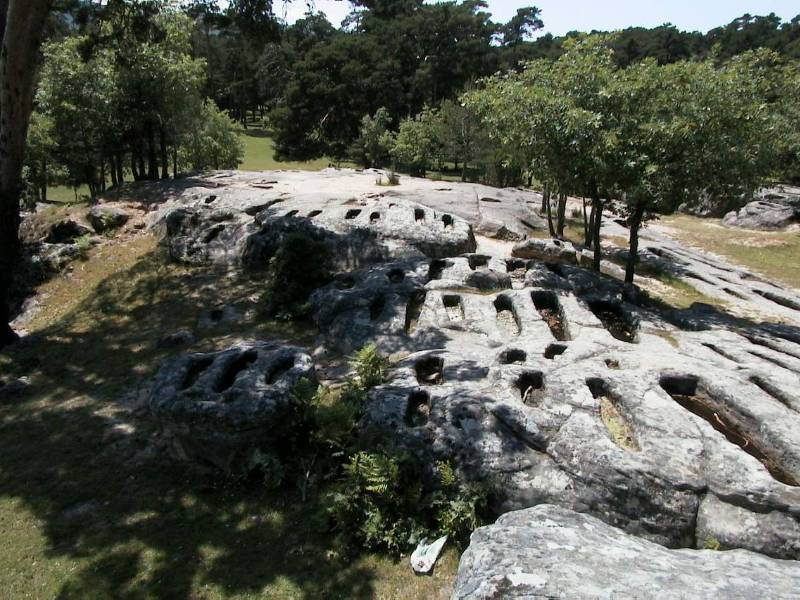 La nécropole rupestre, située sur un petit affleurement rocheux, a une superficie de 2 000 mètres carrés, et à peu près 140 sépultures de différentes tailles ont été documentées en elle.