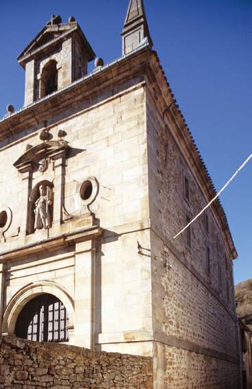 L'édifice est adossé à la capilla de Santiago, avec un portail roman et une image de l'apôtre vêtu en pèlerin, dans une niche sur un arc en plein cintre entre des pilastres.Tout est entouré par une double clôture, la première crenelée, avec des chanfreins aux fenêtres blasonnées et la seconde avec des grilles et des pointes pyramidales.