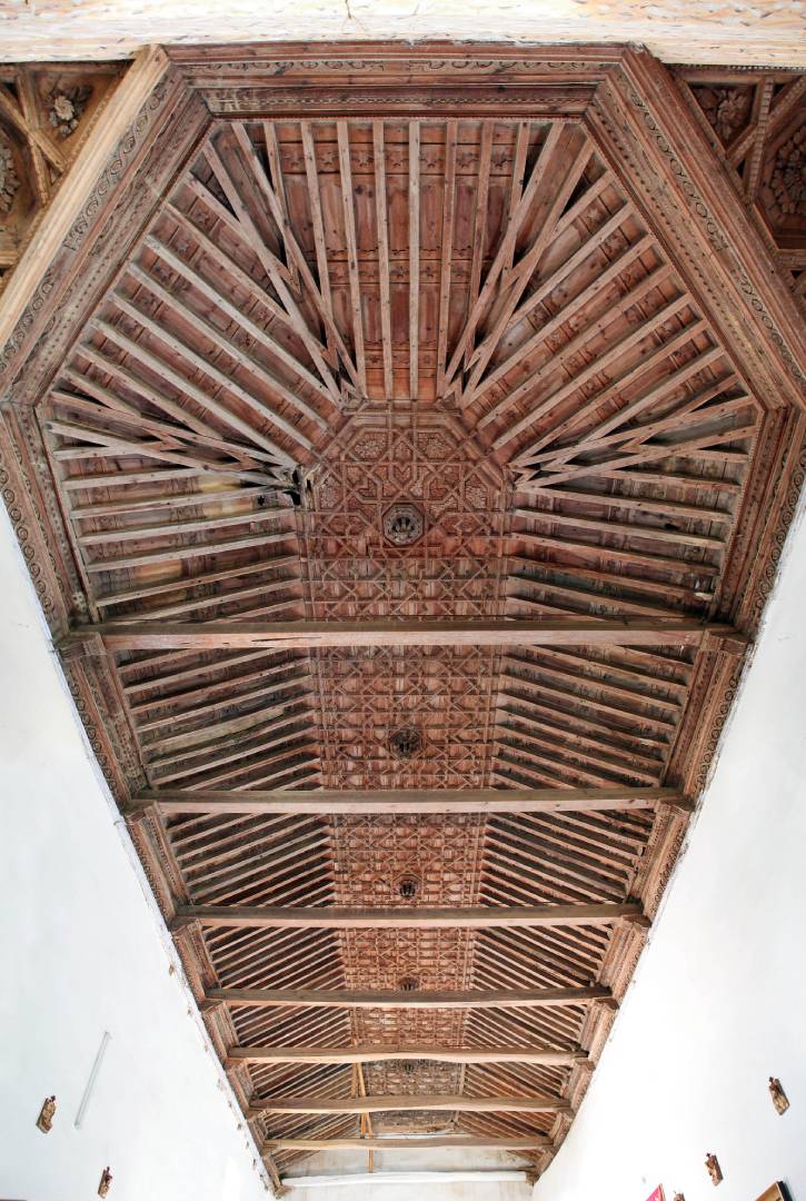 Église de Santa EulaliaPlus d\informationsPour faciliter l'incorporation de charpentes géométriques dans les renforts du toit, les charpentiers ont imaginé la technique de l'ataujerada. Il s'agissait de cacher la structure des toits avec des planches...