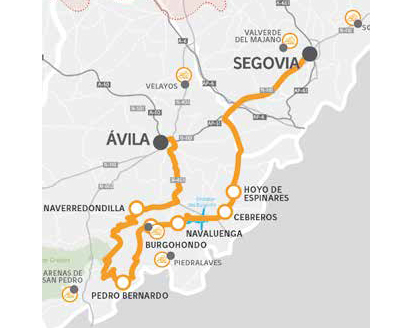 Préparez-vous pour une bonne route de motards. Itinéraire, paysages et surprises constantes vous feront profiter de ce tronçon qui commence et se termine dans deux villes touristiques déclarées patrimoine mondial par l'UNESCO en 1985. Ávila, traditionnellement connue comme « terre de chant et de saints » et Ségovie, présidée par un monument de l'époque romaine ingénierie, l'aqueduc.