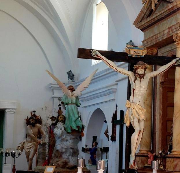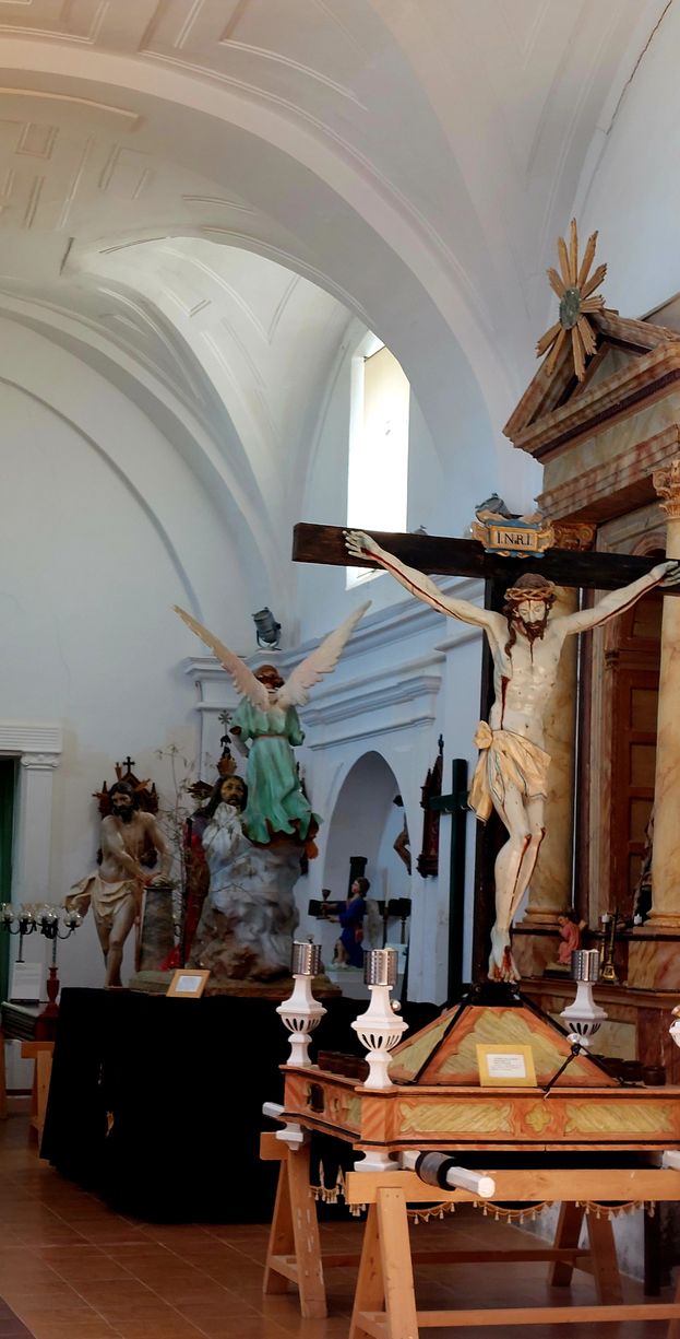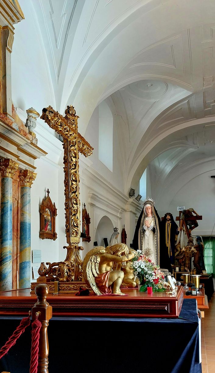 - 圣十字架,17 世纪的匿名作品。在圣周二、周四和周五,这幅维拉克鲁斯兄弟会的圣像被抬着乘坐马车,车上有两位崇拜的天使。