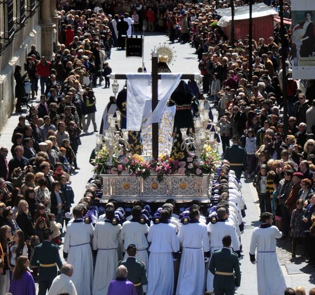 Durant les dix jours de Semaine Sainte, les dix-sept confréries pénitentielles défilent dans les rues. Certaines ont plus de quatre siècles d'existence. Elles mettent en place trente processions comportant d'extraordinaires ensembles sculpturaux que les confrères portent à l'épaule. Ces derniers organisent également des Chemins de Croix processionnels, des sérénades lirico-passionnelles, des concerts et des discours, tout cela devant un public toujours impatient.