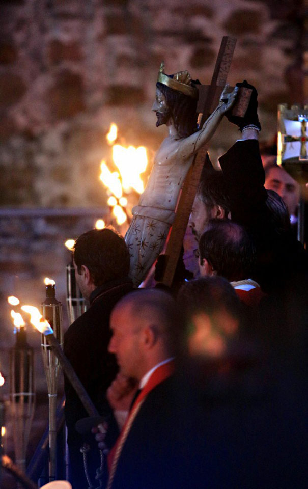 On peut être surpris à la vue d'un confrère portant le deuil et qui, accompagné d'enfants, annonce la procession en faisant sonner une cloche. Ce personnage reçoit le nom bizarre de 'Lambrión chupacandiles' (suceur de chandelles).