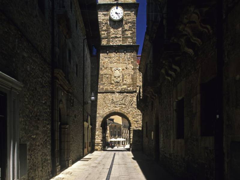 Situee sur l'une des portes des remparts, plus precisement sur l'arc d'acces a la rue la plus typique de Ponferrada. La tour fut construite durant le reigne de Carlos I, au XVIe siècle. Le blason de celui-ci se trouve sur l'arcade d'accès.